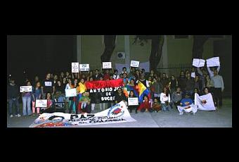 La organización Madresde Plaza de Mayo línea Fundadora, respaldó a los Colombianos, la Madre Mirta Acuña de Baravalle dio unas palabras de ánimo y de aliento para seguir la lucha, EL Cantante Piero junto asu pequeña hija hicieron presencia, y entre abrazos y fotografías siguió dando su mano amiga , Marcha Patriótica como convocante, organizaciones sociales y gente del común, alrededor de 250 personas en Argentinase reunieron ayer en torno a la solución pacífica del conflicto Colombiano.