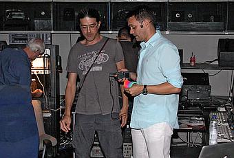 Con los técnicos del Planetario preparándolo todo. Crédito de la imagen: Planetario de Madrid.