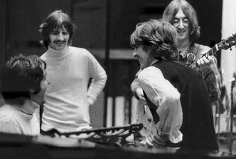 Los cuatro de Liverpool y el imprescindible George Martin durante las sesiones del 'Album blanco'..