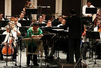 Luego entró al escenario el salterista queretense Héctor E. Larios Barrientos, quien con apenas doce años de edad, brindó una impecable interpretación junto con el dueto Dulcemelos y la OSSLP de la Fantasía para Salterio y Orquesta “Ilusión y Remembranza”, del director, pianista, educador, compositor y pedagogo Francisco Núñez Montes, reconocido por haber sido quien reformó la currícula del INBA en 1980, logrando los reconocimientos oficiales de las Licenciaturas.