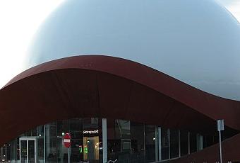 El diseño flexible conduce a los visitantes con toda naturalidad a la cúpula, donde los asientos se pueden inclinar hacia atrás para obtener una buena vista de las proyecciones en 3D. La plataforma al aire libre, el Inforoof, hace que el visitante sea parte del espectáculo universal. Aunque también se puede ver las proyecciones en el exterior de la cúpula, las imágenes digitales no se han visto al margen de la dinámica de la construcción y el cielo de Groningen.