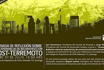 (…) En esta primera jornada, dentro de una serie con este mismo tema, el destacado arquitecto Miguel Lawner entregará una “Reseña histórica crítica de los procesos de reconstrucción desde el terremoto de 1939″.Textos e imagen por: ActividadesCA