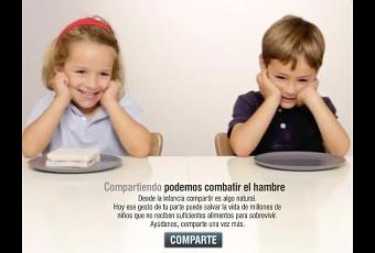 A través de un microsite “experimento comparte” en la página de Acción contra el hambre, se pueden hacer donaciones de diversas maneras, on line, por móvil, o hasta a través de facebook. ¿Cómo? Compartiendo en vuestro muro de facebook, uno de los alimentos solidarios, o bien subiendo una foto de un plato creado por vosotros mismos. Espero que su mensaje surja efecto…