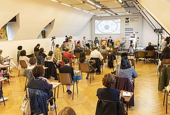 Además, en el Palacio Miramar han estado expuestas durante la jornada acuarelas de Enrique Blanco. Se trata de rostros de las personas cuyos ojos han protagonizado el cartel del curso representando a la ciudadanía presente y observando en todo momento.