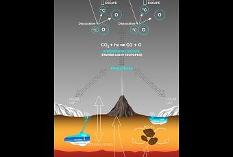 Hu y sus coautores identifican un mecanismo que podría haber contribuido significativamente al enriquecimiento de carbono-13. El proceso comienza cuando la luz ultravioleta (UV) del Sol impacta una molécula de dióxido de carbono en la atmósfera superior, separándola en monóxido de carbono y oxígeno. Luego, la luz UV golpea al monóxido de carbono y lo separa en carbono y oxígeno. Algunos átomos de carbono producidos de esta manera tienen suficiente energía para escapar de la atmósfera, y el nuevo estudio demuestra que es mucho más probable que escape el carbono-12 en lugar del carbono-13.