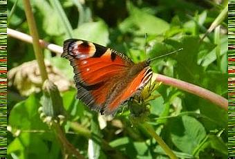 La pavo real es una de las mariposas de las ortigas, que pone sus huevos en dicha planta, donde se desarrollan las larvas. La parte inferior de las alas es muy oscura, lo cual combinado con los grandes ocelos de la parte superior logra distraer a los pequeños pájaros, sus principales predadores.