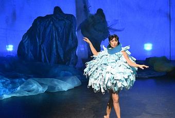 Azael Ferrer con el diseño de iluminación nos trasporta a un sueño del cual no sabemos si queremos o no despertar. En este espacio onírico del fondo marino perfectamente creado por la escenógrafa Dita Segura cabe destacar la escena en la que estas mujeres-océano nos sorprenden con un pase de modelos marino llevando unos impresionantes y creativos outfits hechos de los residuos marinos que inundan nuestros océanos (botellas de plástico, tapones, mascarillas, etc). Impecable trabajo de vestuario también de Dita Segura que nos hace reflexionar sobre si el mayor vertedero no está en el fondo del mar sino en la industria de la moda.