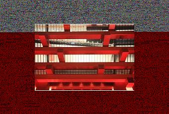aprovecharlo espacialmente?.La sorpresa en este sentido llega cuando accedes al interior del pabellón y lo único con lo que te encuentras es con rampas por el interior pegadas a fachada(imag04), y con el espacio central ocupado por las salas y cuyas unicas vistas cruzadas en