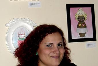 Yo con mis ilustraciones inspiradas en los dulces de Carla.