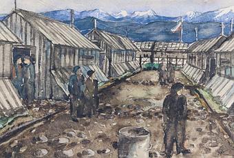 Una mariposa amarilla posada sobre un alambre de espinas encarna la esperanza de la venida de la primavera en Ein Frühling ( Una primavera, 1941), un dibujo de Kurt Löw, diseñador textil de Viena, y Karl Bodek, fotógrafo de Chernivtsi (Ucrania). Con frecuencia trabajaron juntos en el campo de Gurs, al sur de Francia, en el que fueron internados cuando intentaban llegar a España -los Pirineos pueden verse al fondo de la composición-. Löw fue liberado a los 28 años y consiguió huir a Suiza. Bodek murió en Auschwitz a los 37 años.