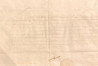 1803. Francia. Napoleón Bonaparte, da poder a Pierre Clément Laussat, para tomar posesión de la Luisiana en nombre de Francia. Archivo General de Indias, Mapas y Planos, Documentos reales, 9.