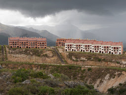Ruinas modernas es un inventario fotográfico de urbanizaciones abandonadas, realizado por la arquitecta alemana Julia Schulz-Dornburg, donde los residuos materiales de la especulación inmobiliaria se muestran en imágenes de hermética poesía, en dramático contraste con la publicidad azucarada de las promociones y el desatino territorial de la planificación, puesta de manifiesto en fotos aéreas y planos de conjunto que reflejan la desmesura de los desarrollos