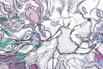 El sol avanza en un cielo sin nubes. Nada se detiene jamás. La línea infinita escribe y escribe, dibuja y dibuja, y pinta, y salta, y brinca y baila, y vuelve a escribir historias sin palabras como solo ella tiene potestad de hacerlo.