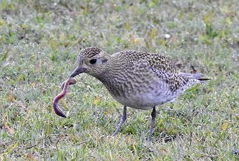 Chorlito dorado atrapando una lombriz de tierra. //El Naturalista Cojo