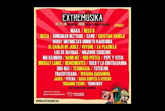 Se sigue perfilando el Extremúsika 2024, el festival vuelve al Recinto Hípico de Cáceres en la parte final de septiembre. Extremúsika apuesta fuerte para su edición 2024, sigue apostando por un cartel de mezclas, pero con criterio para las tres jornadas de septiembre.El Extremúsika de este 2024, uno de los festivales más destacados del otoño español que se realizará entre el 26/9 y 28/9 en el Recinto Hípico de Cáceres con nombres como Maka, Derby Motoreta's Burrito Kachimba, Trashtucada, El Canijo de Jerez, LaPlazuela, Mr Kilobo o Rulo y la contrabanda entre otros, serán tres jornadas llenas de directos.