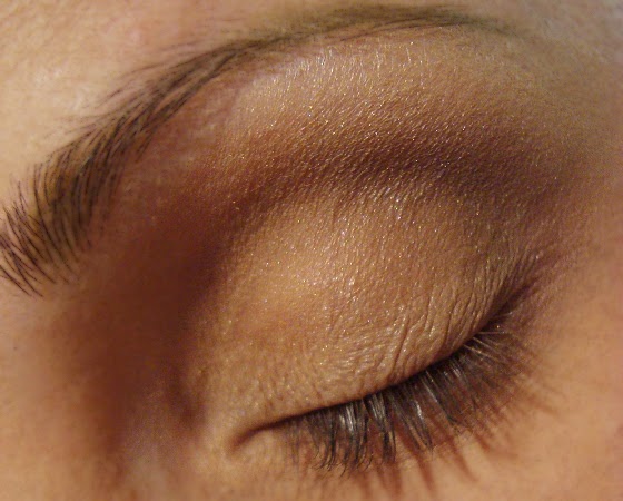 Aplico sombra marrón natural en la cuenca del ojo y difumino. Luego en el centro, aplico sombra beig natural.