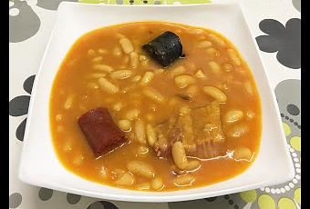 - Cocina lentamente la fabada a temperatura baja durante unas 3 horas aproximadamente, removiendo de vez en cuando con mucho cuidado para que no se deshagan las alubias.