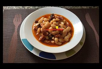 4- Cuando ya casi estén tiernas las fabes, sacar el compango, cortar en trozos, con cuidado de que no se deshagan, devolver a la cazuela. Yo saco un puñado de fabes y las hago puré y las echo a la cazuela en los últimos minutos, así da otra textura al caldito. Dar otro hervor , 10 Minutos, en el mismo menú, Fuego Lento, sin tapa, 110º. Dejar reposar unos minutos y a disfrutar. Quedan en su punto!