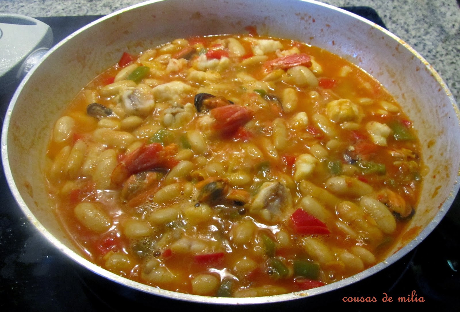 Quiero empezar disculpándome con todos vosotros, porque no paso por vuestros blogs, como tengo por costumbre.. es por falta tiempo; emprendo el martes por la mañana un largo viaje y tengo mil cosas que hacer! Pero me encanta el ingrediente delRecetario Mañoso, y no quería dejar de participar aunque sea solo con una receta. Este mes el anfitrión es Agustí del blog Cangrejo Grande, la tutora María Pilar del blog Cocina de benas, y el ingrediente... las alubias. Agustí nos ha dejado en el Mañoso, una buena lección sobre el tema... y nos habla de las muchísimas variedades que tenemos en este país, una de esas 895, es esta maravilla que os traigo hoy... La faba de Lourenzá, una joya de nuestra tierra, que casa de maravilla con infinidad de ingredientes; esta vez me incliné por los marinos, pero con los terrestres también está exquisita.