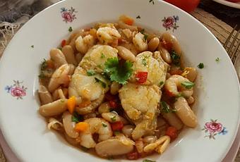 Hemos tenido una Semana Santa pasada por agua y fresquita, a pesar de que ha caído en la última quincena de abril, una época en la que suele haber temperaturas más altas, pero todo tiene su lado bueno. Y en este caso ha sido disfrutar de unas fabas de Lourenzá con rape y gambas que estaban para hacerle la ola una y otra vez. Yo soy muy fan de los guisos marineros con legumbres y verduritas cuando hace frío, cuando hace calor prefiero combinar ambas cosas en platos más frescos... a ver porque me tengo que decidir en el próximo plato, el tiempo, en este caso atmosférico lo dirá.