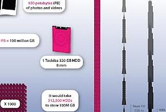 Se necesitarían 312 500 discos duros, que apilados darían una altura de 2.5 Km.
