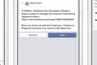 La persona que designemos como sucesora de nuestra cuenta no será notificada de sus poderes ni podrá tocar nada de nuestra cuenta hasta que fallezcamos, aunque para que esté prevenida y no le venga todo de sopetón Facebook nos permitirá mandarle un mensaje en el mismo momento en el que la añadamos.