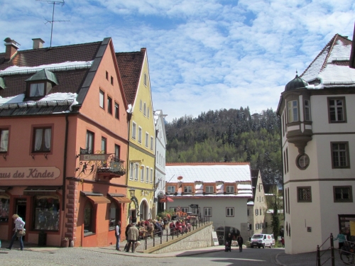 Los paseos a pie, en la parte histórica de Fussen, son un regalo para la vista, ir sin rumbo fijo, simplemente observando las fachadas de las casas que se caracterizan por sus colores, y sus adornos ya sean con pinturas o con estatuas colocadas en la parte superior de as paredes.