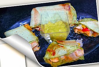Esta es una receta de una página que me paso mi amiga Chefclub España tienen unas recetas muy originales como esta y exquisitas.INGREDIENTES:1 pimiento verde1 pimiento rojo1 pimiento amarillo1 cebollas1 pechuga de pollo150 gr de queso elemental rallado150 gr de nachos9 tortillas de trigo ( yo las he puesto de espinacas)Aceite de olivaPimentón dulceINGREDIENTES PARA EL GUACAMOLE:2 aguacates1 tomate1 cebolla½ limaCilantroTabascoELABORACIÓN:Colocaremos el pollo y los pimientos en juliana y una cebolla en dados pequeños. Colocaremos en una fuente de horno y sazonaremos con el pimentón dulce y el aceite de oliva y salpimentaremos algusto.Hornearemos a 180º C durante unos 20 minutos.Cubriremos una fuente rectangular con las tortillas, luego aremos una capa con la mitad del queso rallado y a continuación añadiremos la mitad del pollo con pimientos y cebolla. Cubriremos con los nachos, luego añadiremos el resto del pollo y cubriremos nuevamente con el resto del queso cerraremos con las tortillas y hornearemos a 180ºC durante 20 minutos.ELABORACIÓN DEL GUACAMOLE:En un bol, prepararemos el guacamole con los aguacates, la cebolla y el tomate picadito, el zumo de la lima y el cilantro al gusto y unas gotas de tabasco y mezclamos bien con un tenedor. Y listos para disfrutar