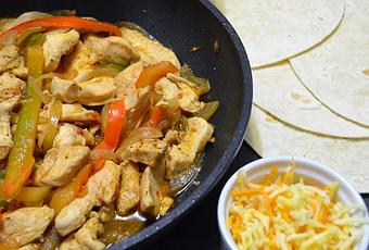 Ayer por la noche el pequeño cocinillas se empeño en hacer él las fajitas y como es un cabezón no me quedo más remedio que dejar que me ayudará. Tanto que un poco más y pone medio bote de sazonador al pollo, entre eso y que quería echar sal y más sal..... al final quedaron muy bien.je,je,je