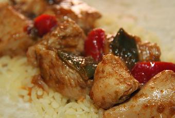 Cuando ya está casi hecho, agregamos la pechuga de pollo, que la hemos troceado en pequeños trozos. Si es en tiras finas, mejor. Le ponemos un poquito de sal y pimienta negra recién molida. Cuando está dorada, le agregamos el sobre de tacos y un poco de agua. Dejamos cocer, hasta consumir el agua.