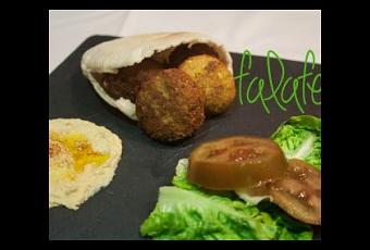 Introducimos en el vaso los garbanzos lavados y bien escurridos. Añadimos los ajos, la cebolla, el perejil, los cominos, la sal y la pimienta al gusto. Trituramos programando 15 segundos, velocidad 5.