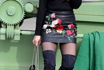 Los bordados son unas de las tendencias de este otoño/invierno y prometen seguir siéndolo para la próxima temporada. Podemos encontrarlos en todo tipo de prendas, complementos y tejidos pero sin duda las prendas de cuero, piel o polipiel, junto con las vaqueras, son las estrellas y quizá las más llamativas. Hoy os enseño una falda de polipiel con bordados de flores, una prenda que sin duda es la protagonista del look. Este tipo de prendas tan llamativas me gusta combinarlas con básicos así que escogí uno de mis imprescindibles en invierno, un jersey de cuello cisne negro, botas mosqueteras negras y un gorrito de lana también negro. La única nota de color la pongo con un abrigo verde a juego con las hojas de la falda que tengo desde hace un montón de años y que casi no pongo pero que gracias a esta falda ha vuelto a salir, si es que el que guarda siempre tiene..... Buen fin de semana! Falda: STRADIVARIUSJersey / Abrigo: MANGO (pasadas temporadas)Botas: NELLYBolso: MANGO