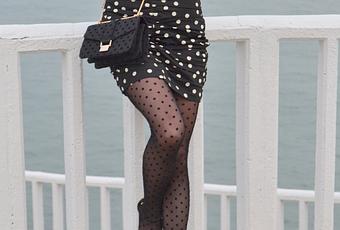 Hoy un look donde combino una prenda de tendencia con uno de mis estampados favoritos, minifalda de lunares, con una prenda básica e imprescindible en cualquier fondo de armario, la camisa blanca. En este caso los complementos también tienen gran importancia, medias de plumeti con estampado de lunares y costura trasera, bolso caja y zapatos joya.
