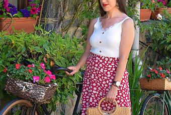 Por otro lado, la maxi falda roja, con estampado de margaritas y abertura en la zona frontal, es una prenda muy femenina y que estiliza un montón. Sienta como un guante y es super alegre.
