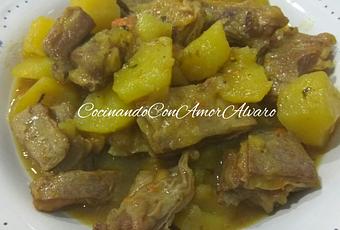 - Tapamos y dejamos cocer a fuego medio, hasta que las patatas y la carne estén cocidas. Aproximadamente unos 40 minutos, rectificamos de sal si hace falta. Y el guiso estaría terminado y listo para servir.