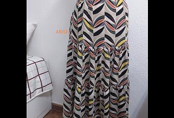 el forro lo he cortado un poquito más amplio de la medida de la falda y para que no tire le he puesto pliegues de dos en dos en la cintura mirando hacia los lados, además de unas aberturas laterales para mayor comodidad.