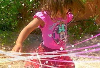No puede estar más contenta con su faldita, que mona, verdad? Me la como...Felicidades Esther!!! 5 años ya... madre mía como crecen
