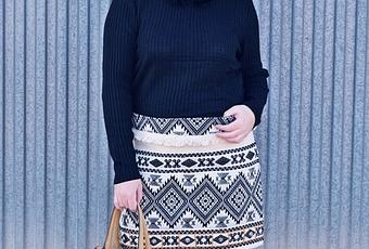 Para la ocasión opté por llevarla con un jersey de punto negro con detalle de plumas en la zona del cuello y elegí el bolso mostaza para romper el juego de colores y darle un toque más moderno.