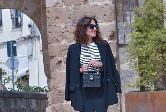 Cómo ya sabéis, las faldas denim son tendencia este año, aunque ya se vieron el año pasado. Yo la tengo en color vaquero y ahora en negro, son favorecedoras y muy versátiles.La he combinado con blazer en negro, sweater de rayas, bolso de rafia negro y zapatillas. La combinación es infalible y no te cansas de verlo.Os dejo con las fotos y el video en movimiento: