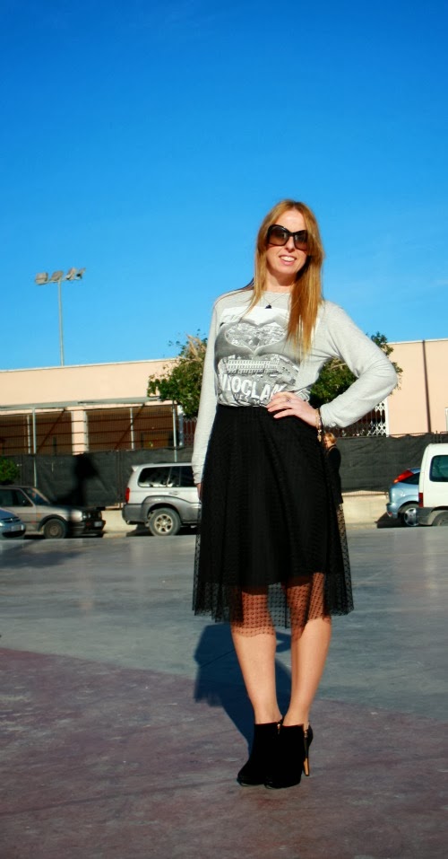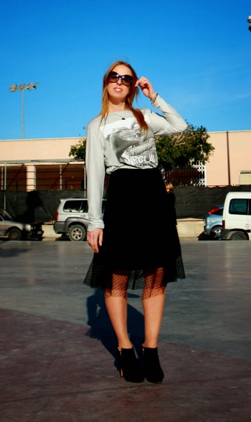 Por fin Viernes¡¡este para mi es un súper Viernes, porque es miCumpleaños. Madre mía como pasa el tiempo¡¡¡, pero bueno eso lo dejaremos para otro día jajaja. El Domingo pasado fue un día de fiesta junto a toda mi familia en el pueblo de mi padre. Para ese día elegí un look informal pero con un puntoChic. Tenía muchas ganas de estrenar mi fantástica faldaMidi,esta vez la combiné con camiseta informal, pero tengo tantos looks pensados con ella. Mi cazadora mitad vaquera mitad Poli-piel, regalo de mi cumple, adelantado, y mis inseparables botines. La fotos hoy están un poco así así, mi hermana no se aclara con la cámara, pero bastante es ya que accediera hacérmelas jajajja. Qué me decís, os gusta el look? Tenéis ya alguna falda Midi? Besotes y Feliz Fin de Semana¡¡¡¡ Falda:ZaraCamiseta:ZaraBotines:María MaréCazadora:RegaloBolso de mano:PrimarkGafas de Sol: Centro Óptico Avenida Elche¿Os gusta?