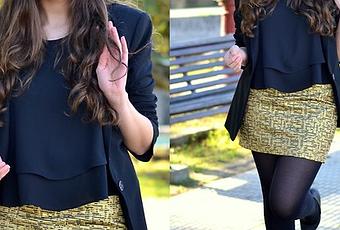 Yudani Pousada Mango Falda Dorada Zara Blusa Negra Zara