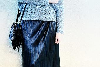 Las faldas plisadas de corte midi tienen mucho juego. Si las combinas bien puedes llevarlas para looks formales como informales. Ya os he mostrado en diversas ocasiones looks de diferentes estilos con esta falda plisada negra con toque metalizado.
