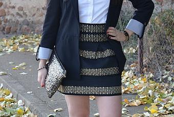 Como veis la falda esta llena de tachuelas y ese es el gran problema de esta prenda, que he tenido que pegar varias y supongo que las iré perdiendo a medida que vaya usándola , por lo demás es muy bonita, la parte de la cintura esta hecha de goma elástica y tiene una cremallera por la parte trasera.