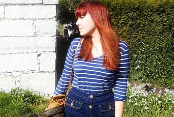Camiseta lefties, falda stradivarius, bolso vintage y mocasines pull and bear