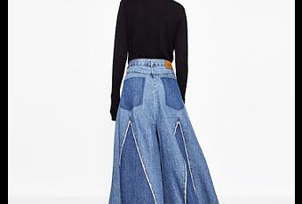 Empezamos por un modelo que en la web de Zara definen como CULOTTE FALDA DENIM, ya que la denominación "pantalón horrible de pata ancha" no tiene gancho.