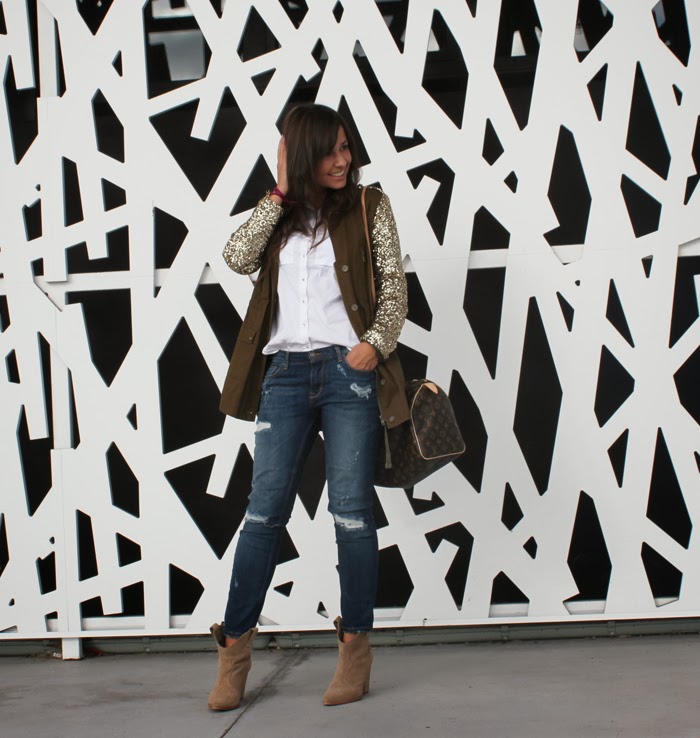 "No sólo de básicos vive el hombre"... pero últimamente el poco tiempo para ir de tiendas me obliga a recurrir a mí fondo de armario. Antes de empezar a hablar del look, quiero hacer una mención especial a la firma de bisutería y complementos "Fall in Style" . Fall in Style nace de la mano de Anaïs una joven artista y emprendedora, que además también es asturiana. Anaïs nos cuenta que su historia comenzó con un presupuesto de 20 euros pero muchísima ilusión, y la idea de crear unos broches mariposa… que resultaron ser ¡un éxito! Desde entonces sus puntos de venta comenzaron a crecer, al igual que sus diseños, entre los cuales podemos encontrar piezas únicas y originales tanto pulseras, como collares, bolsos... todos diferentes aunque unidos por una exquisita delicadeza que los convierte en auténticos tesoros.Si queréis conocer más sobre su increíble trabajo os invito a echar un ojo a su blog aquí y también a mí colaboración en la TPA sobre "compras a golpe de click" dónde menciono su tienda online aquí.Pues bien, cómo podéis ver hoy opté por dar color a mí outfit con una de sus piezas, concretamente esta maravillosa pulsera de seda y estrellitas en color magenta. Siempre me han gustado mucho las estrellas, ya que mí nombre significa Estrella de Venus, así que esta pulsera se convertirá en uno de mis inseparables. El resto de prendas ya han salido muchas veces, volví a ponerme mí parka preferida que tan buenos recuerdos me trae, esta vez con mi adorado bolso speedy. El resultado nuevamente un look todoterreno, básico, clásico ¿os gusta?Pulsera / Brazalet Fall in Style aquí/hereBolso / bag Louis VuittonParka LyFJeans ZaraCamisa / shirt ZaraBotines / booties Zara