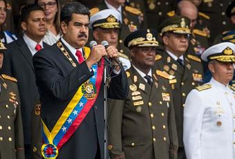 En medio de una multitudinaria actividad en la avenida Bolívar de la ciudad de Caracas, a propósito del 81 aniversario del nacimiento de la Guardia Nacional Bolivariana (GNB), dos drones cargados con material explosivo