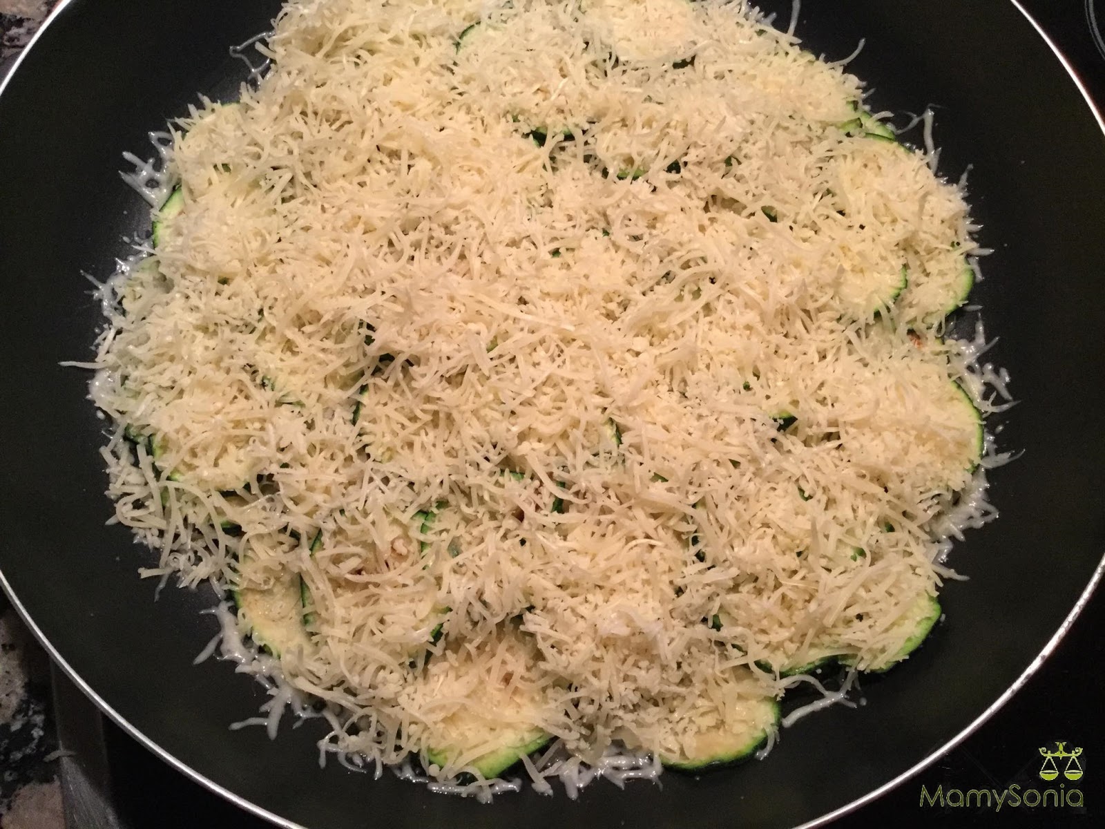 Cubrimos con las rodajas de calabacín la base de la sartén