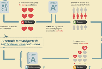 Falsaria es la comunidad literaria más grande en hispanoamérica. La idea consiste en crearnos un perfil y subir nuestra obra, relato, poesía, etc y los demás escritores y miembros de la comunidad podrán leer nuestra aportación. Los relatos que más votos "me gusta" obtienen pasan a pujnar por aparecer en la versión trimestral impresa de FALSARIA.