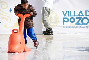 Durante la temporada decembrina, familias de Villa de Pozos han acudido de manera constante a la pista de hielo instalada a un costado del jardín principal, un espacio recreativo de acceso completamente gratuito que por primera vez se ofrece en el municipio como parte de las actividades navideñas.